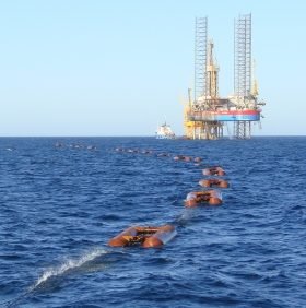 With the submerged method a string of pipe is kept afloat by means of buoyancy tanks and towed to the field. When positioned on the exact location in the field the pipe line is installed by ballasting the tanks one by one in controlled manner and sequence.